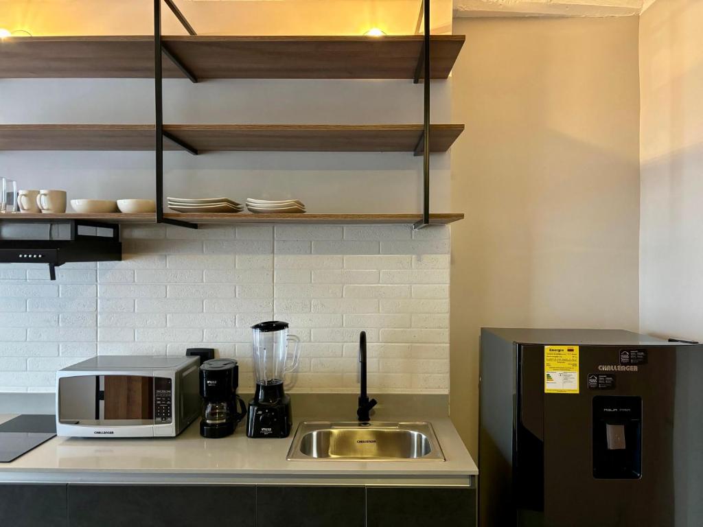 Zona de cocina, Nevera, Microondas, Cocina, Utensilios de cocina, Cafetera