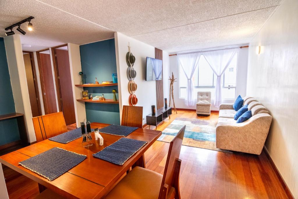 Puedes viajar con tu familia y hospedarte cómodamente en City Escape, Brand New Flat with Wooden Accent in upper class neighborhood in Bogotá.