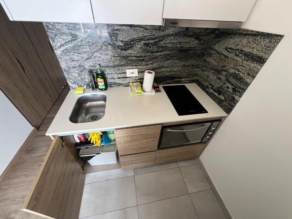 Estudio en chapinero central cuenta con instalaciones como cocina o acceso a opciones de comida en el establecimiento.