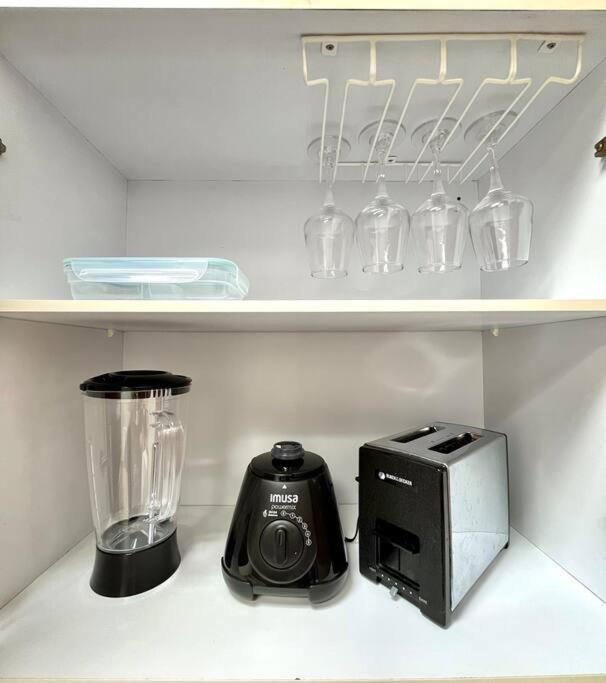 Zona de cocina, Nevera, Cocina, Fogones, Tostadora, Productos de limpieza, Mesa de comedor, Copas de vino