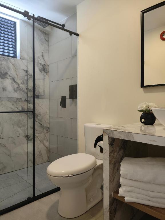 Ducha, Secador de pelo, Artículos de aseo gratis, WC, Bañera o ducha, Toallas / sábanas (por un suplemento), Toallas, Papel higiénico, Ducha a ras de suelo, Champú, Gel de ducha
