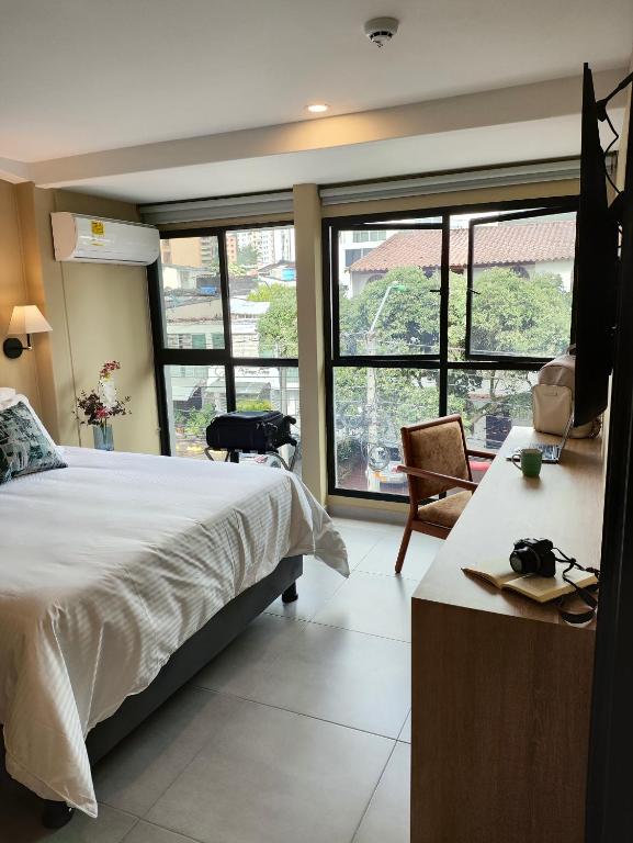 The spacious studio provides air conditioning, a seating area, as well as a private bathroom featuring a walk-in shower and a hairdryer. The studio's kitchen, which features a refrigerator and kitchenware, is available for cooking and storing food. The studio features a flat-screen TV, a dining area, a wardrobe, a safe deposit box as well as an inner courtyard view. The unit offers 2 beds.