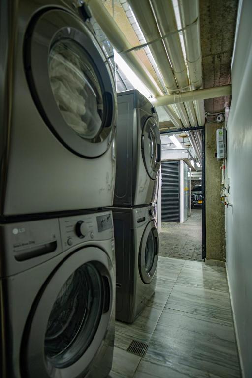 The apartment's kitchen, which features a refrigerator and kitchenware, is available for cooking and storing food. This apartment is air-conditioned and has a seating area with a TV, a washing machine, a coffee machine and tumble dryer. The unit has 1 bed.