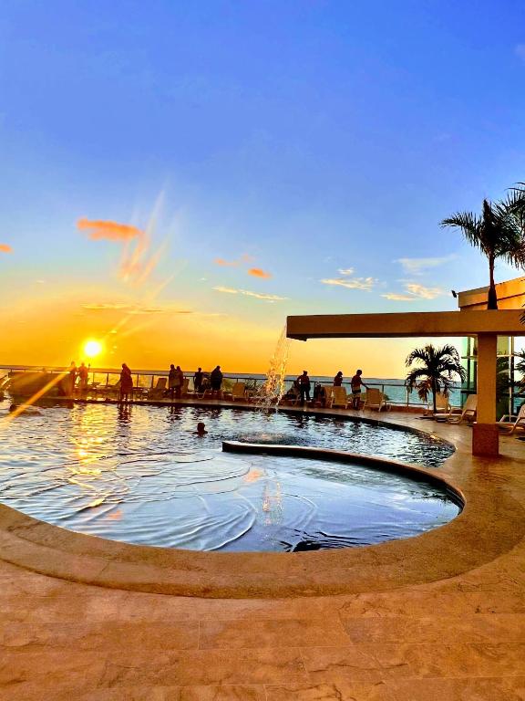 Puedes bañarte en la piscina de Apartmento con vista al mar, Palmeto.