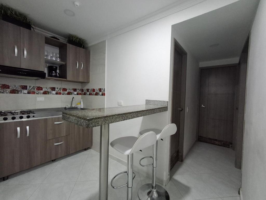 Apto cerca al centro y playa Marbella cuenta con instalaciones como cocina o acceso a opciones de comida en el establecimiento.