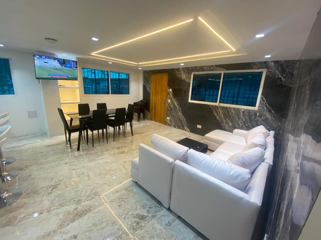 Sí, Casa de lujo en barrio popular dispone de habitaciones y servicios para familias.