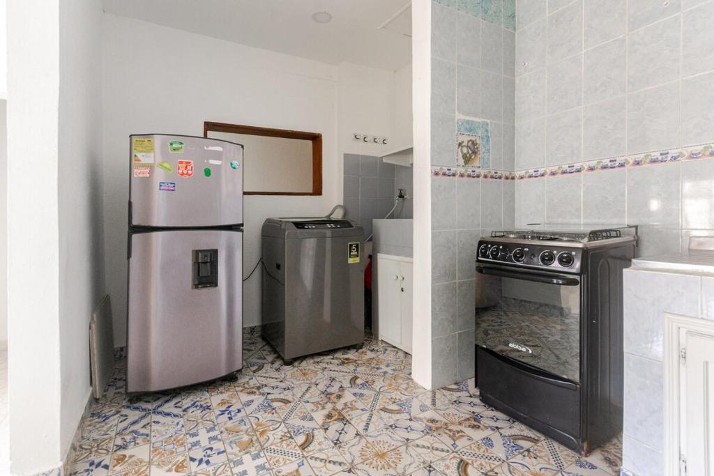 Zona de cocina, Nevera, Lavadora, Cocina, Cafetera, Mesa de comedor