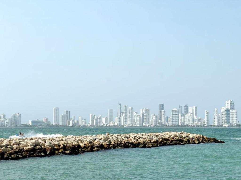 habitación en cartagena de Indias laguito cuenta con instalaciones como cocina o acceso a opciones de comida en el establecimiento.
