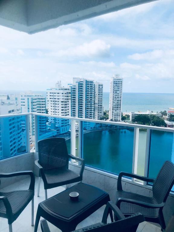 Hermoso Apartamento en el laguito bocagrande Cartagena de indias cuenta con instalaciones como cocina o acceso a opciones de comida en el establecimiento.