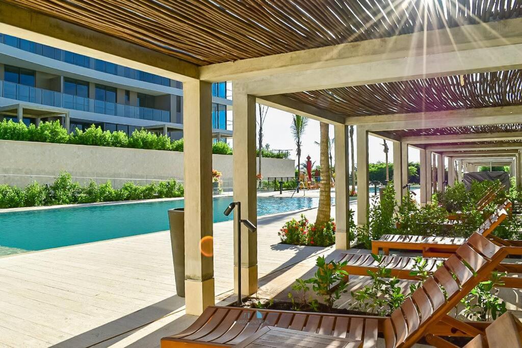 Puedes bañarte en la piscina de Hermoso y con acceso directo a la playa!.