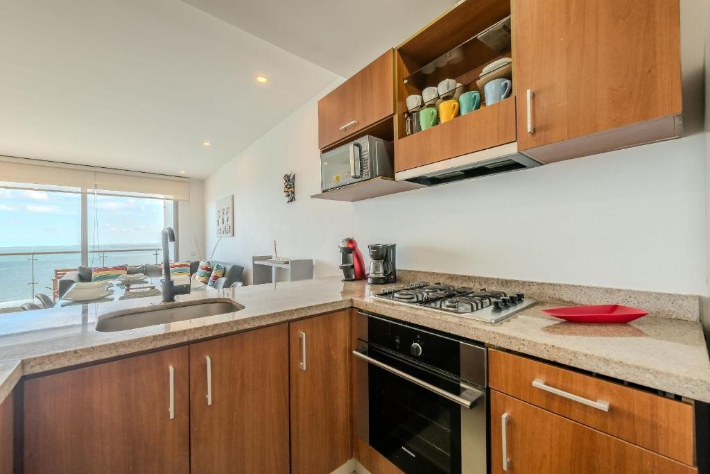 Alrededor de Piso 24 vista al mar 2BR hay puntos turísticos como Parque del Cabrero (1.2 km), India Catalina (1.9 km), Parque San Diego (2 km).