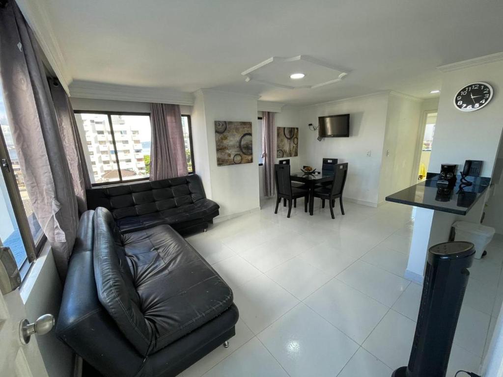 Puedes visitar lugares como Museo de la esmeralda Colombiana (1.5 km), Parque de la Marina (1.8 km), Parque La Marina (1.8 km) cerca de Vista Al Mar, Aire Acondicionado en Todo el Apto, Wi-Fi, Parqueadero.