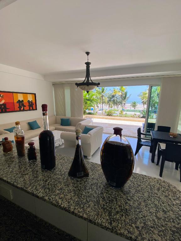 Vista directa al mar con amplia terraza y 3 habitaciones cuenta con instalaciones como cocina o acceso a opciones de comida en el establecimiento.