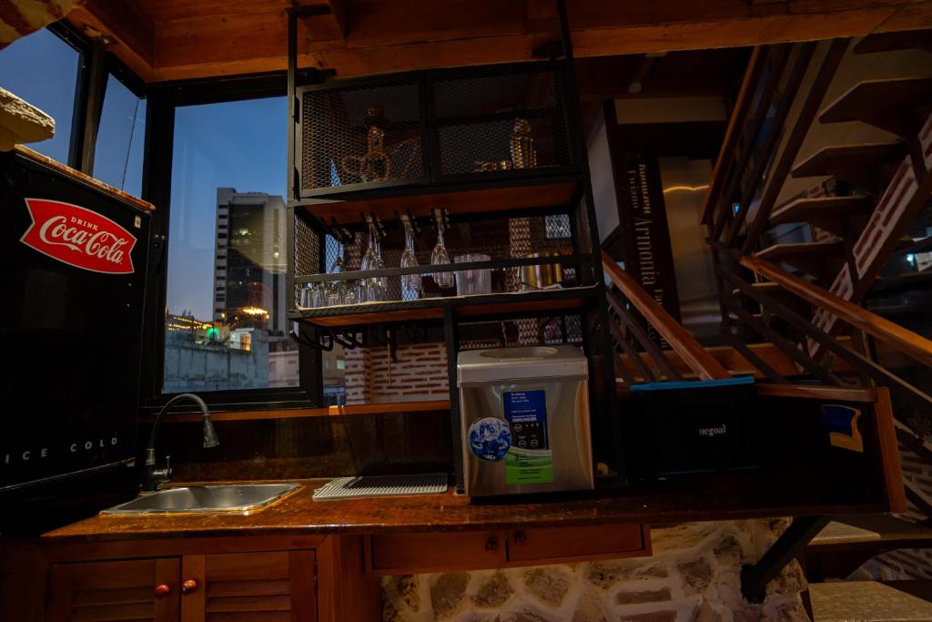 Zona de cocina, Nevera, Cocina, Utensilios de cocina, Cafetera, Copas de vino