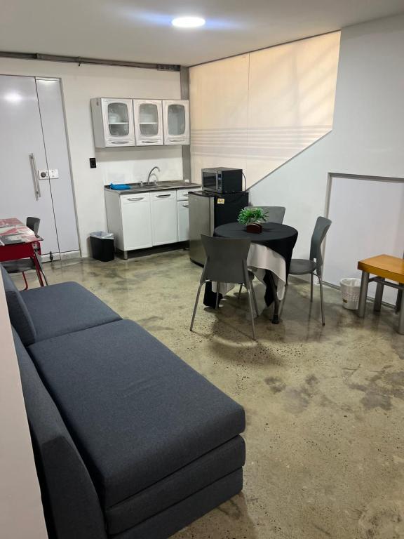 Apartamento para grupos grandes dentro de centro comercial con frisby cuenta con instalaciones como cocina o acceso a opciones de comida en el establecimiento.