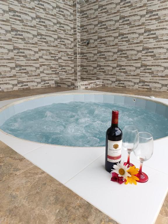 This holiday home features a pool with a view and a hot tub. This spacious holiday home features 1 living room, 3 separate bedrooms and 2 bathrooms with a bath and free toiletries. In the well-equipped kitchen, guests will find a stovetop, a refrigerator, kitchenware and an oven. Boasting a terrace with garden views, this holiday home also features a private entrance and a flat-screen TV. The unit has 5 beds.