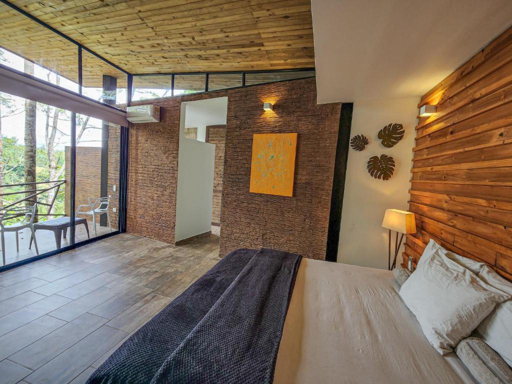 The double room provides air conditioning, a private entrance, a balcony with mountain views as well as a private bathroom featuring a walk-in shower. The unit offers 1 bed.