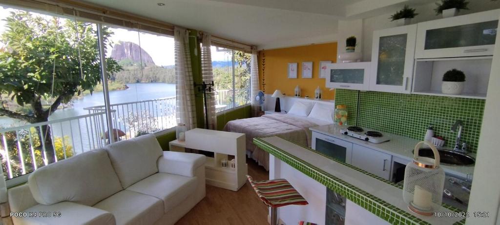 Finca Con Hermosa Vista a la Piedra del Peñol y Jacuzzi Grande cuenta con instalaciones como cocina o acceso a opciones de comida en el establecimiento.