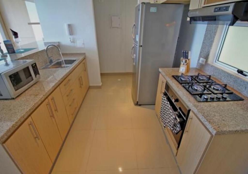 Apartamento Vacacional con Vista al Mar en Santa Marta cuenta con instalaciones como cocina o acceso a opciones de comida en el establecimiento.