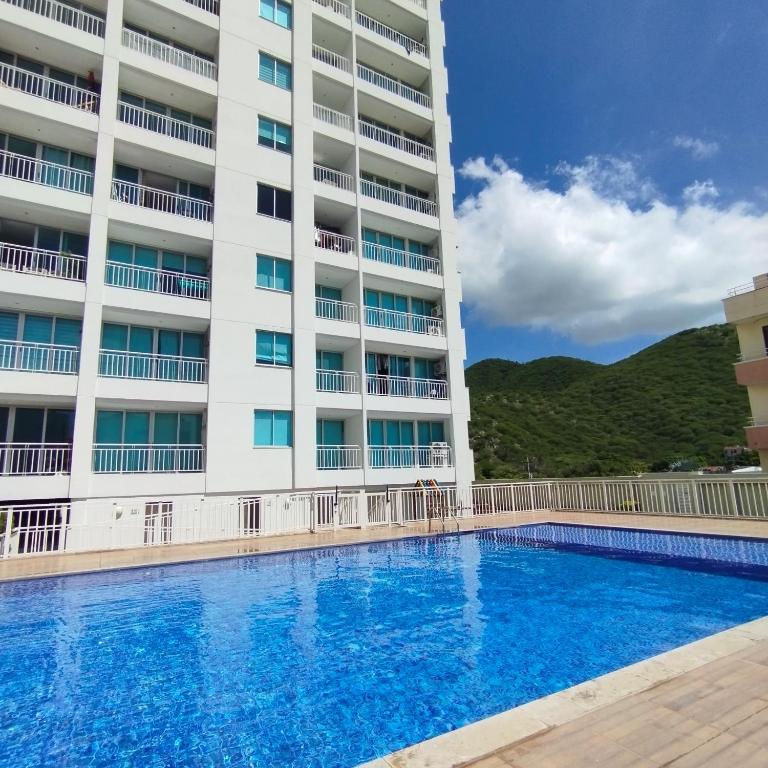 Puedes bañarte en la piscina de Estupendo y tranquilo apartamento en Santa Marta, El Rodadero.