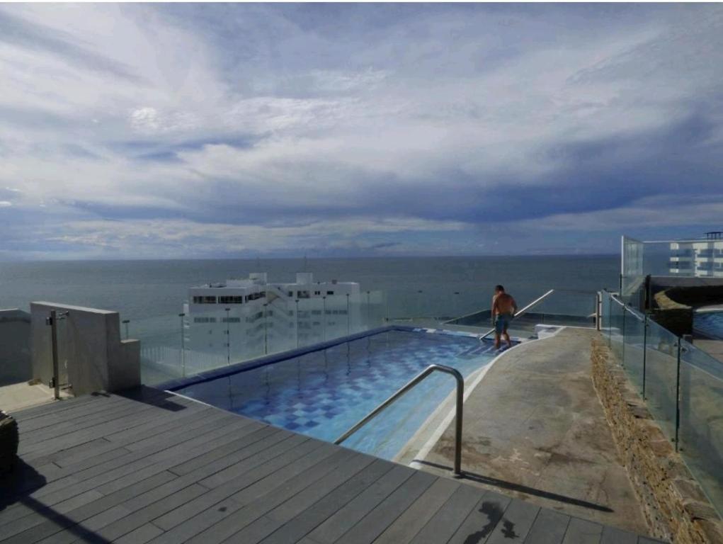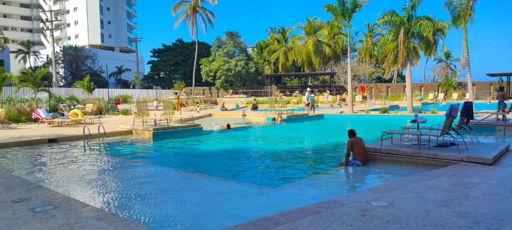 Puedes bañarte en la piscina de Santa Marta Apartamento Reserva del Mar.