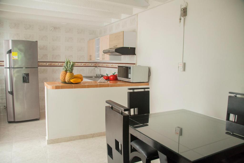 Zona de cocina, Nevera, Microondas, Cocina, Utensilios de cocina, Fogones, Mesa de comedor