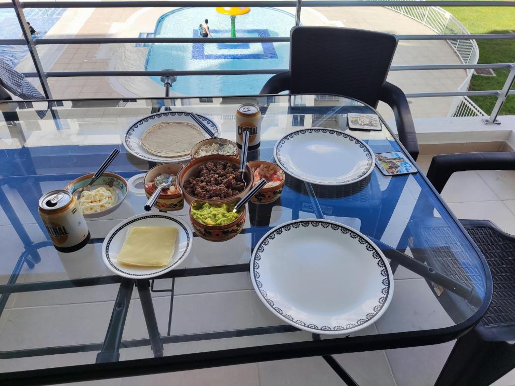 Hermoso apartamento con piscina (alberca). cuenta con instalaciones como cocina o acceso a opciones de comida en el establecimiento.
