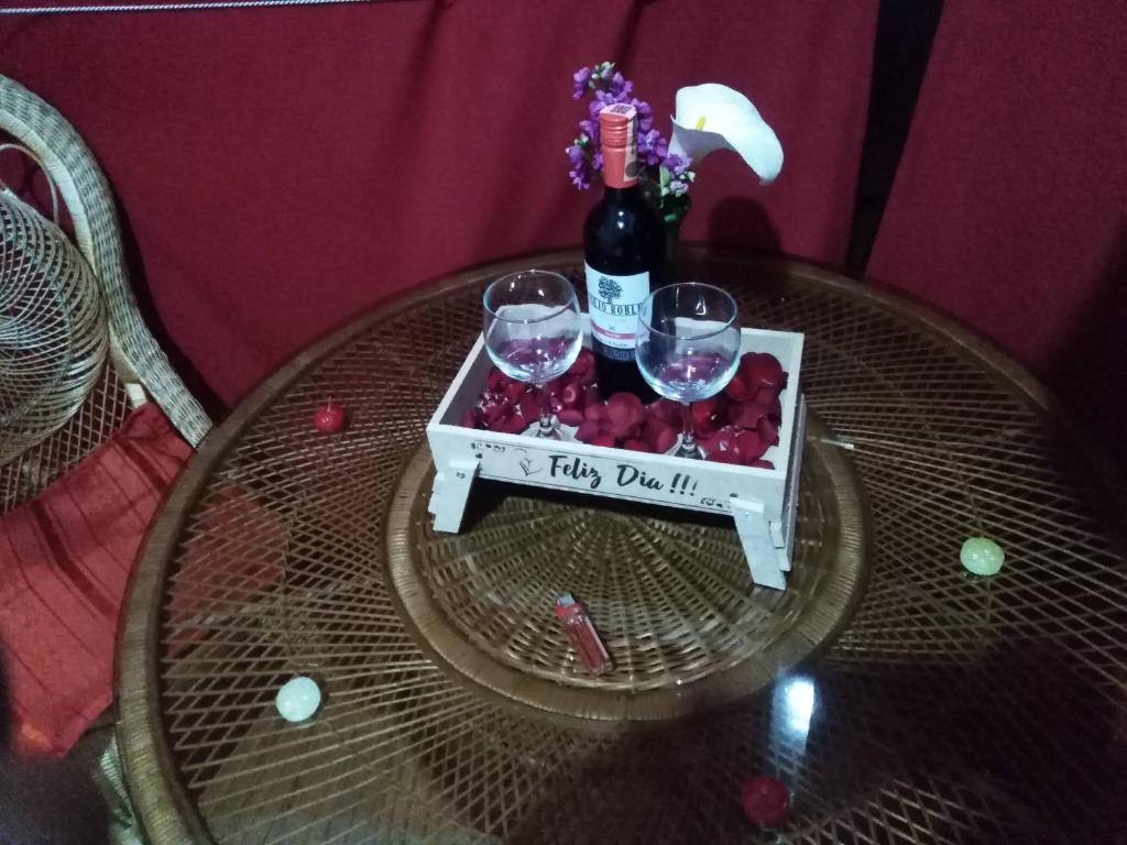 Nevera, Fogones, Mesa de comedor, Copas de vino, Hervidor eléctrico