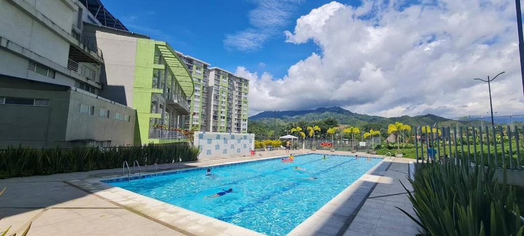 Sí, en Hermoso y amplio apartamento cerca del parque deportivo podrás disfrutar de piscina durante tu estancia.