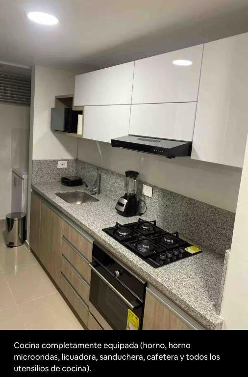 Lujoso apartamento con aire acondicionado en calle 60 Ibagué Tolima cuenta con instalaciones como cocina o acceso a opciones de comida en el establecimiento.