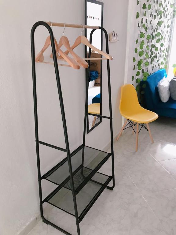 Perchero, Sofá cama, Enchufe cerca de la cama