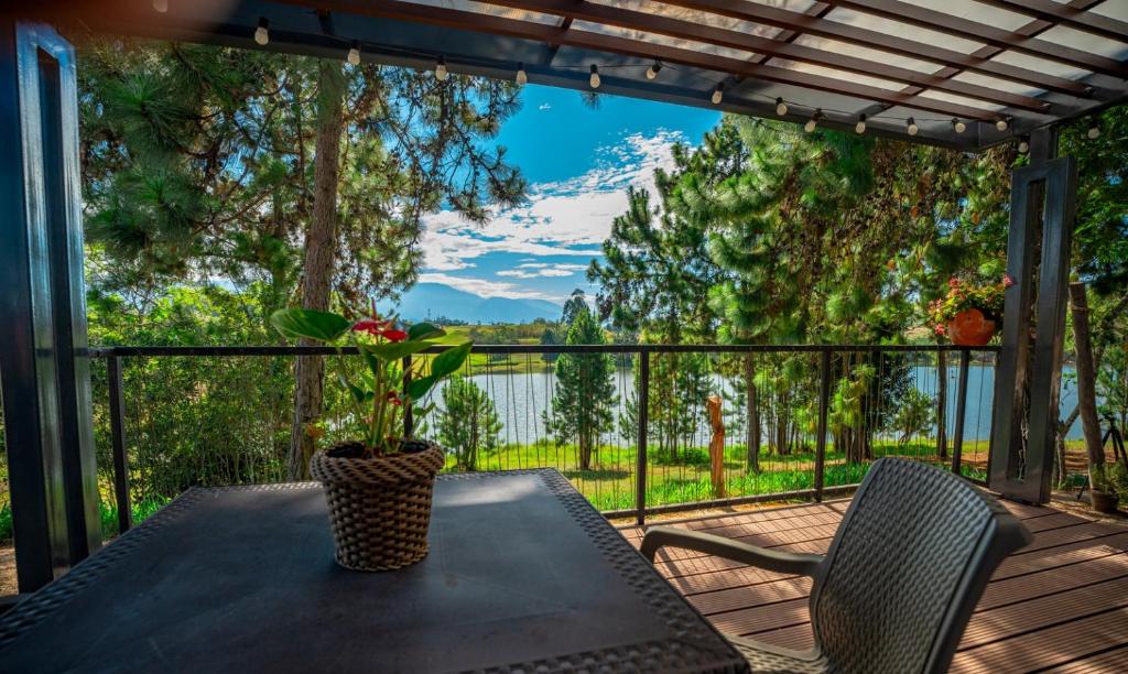 The family room features air conditioning, a tea and coffee maker, a balcony with lake views as well as a private bathroom boasting a shower.
