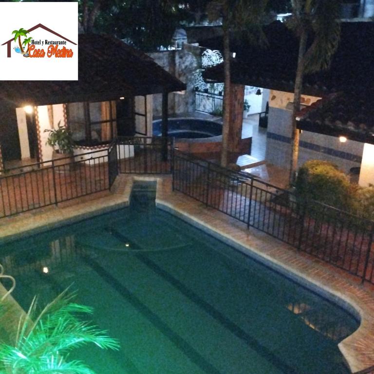Sí, en Hotel y Restaurante Casa Medina podrás disfrutar de piscina durante tu estancia.