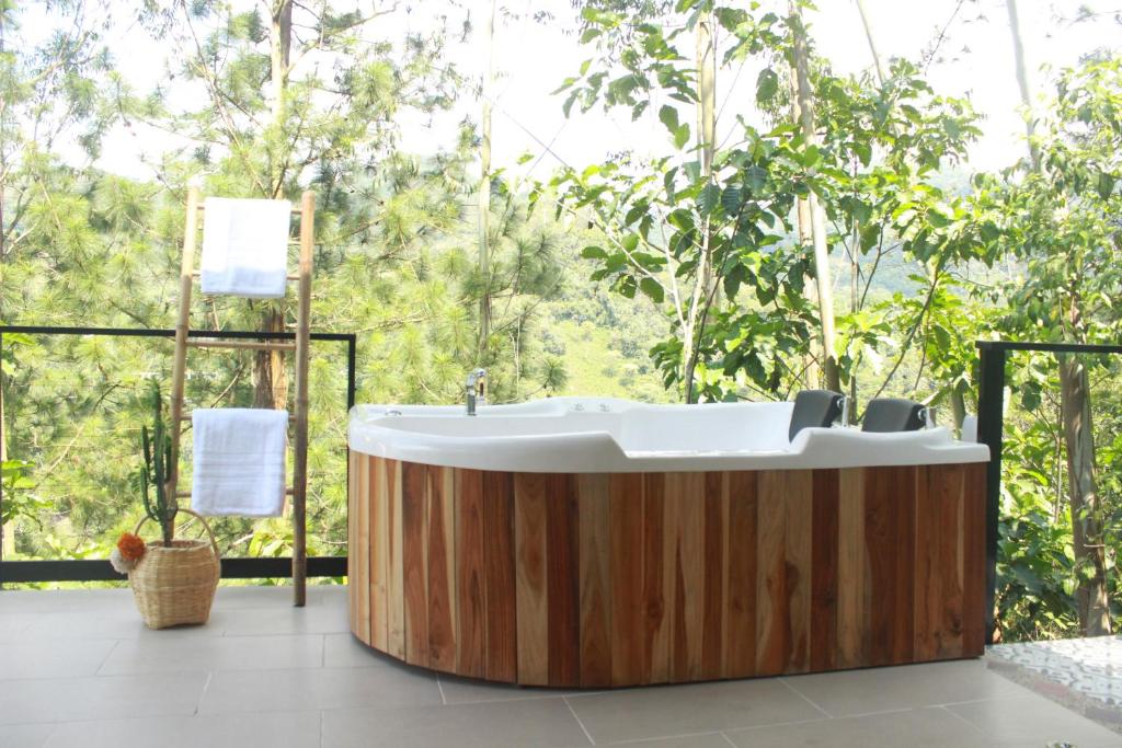 This chalet features a hot tub and a spa bath. The chalet has 1 bedroom and 1 bathroom with a shower and free toiletries. The chalet features a minibar, a tea and coffee maker, as well as a terrace and an outdoor dining area. The unit has 1 bed.