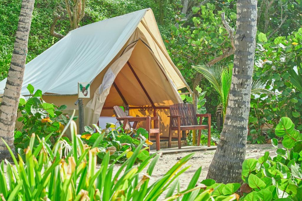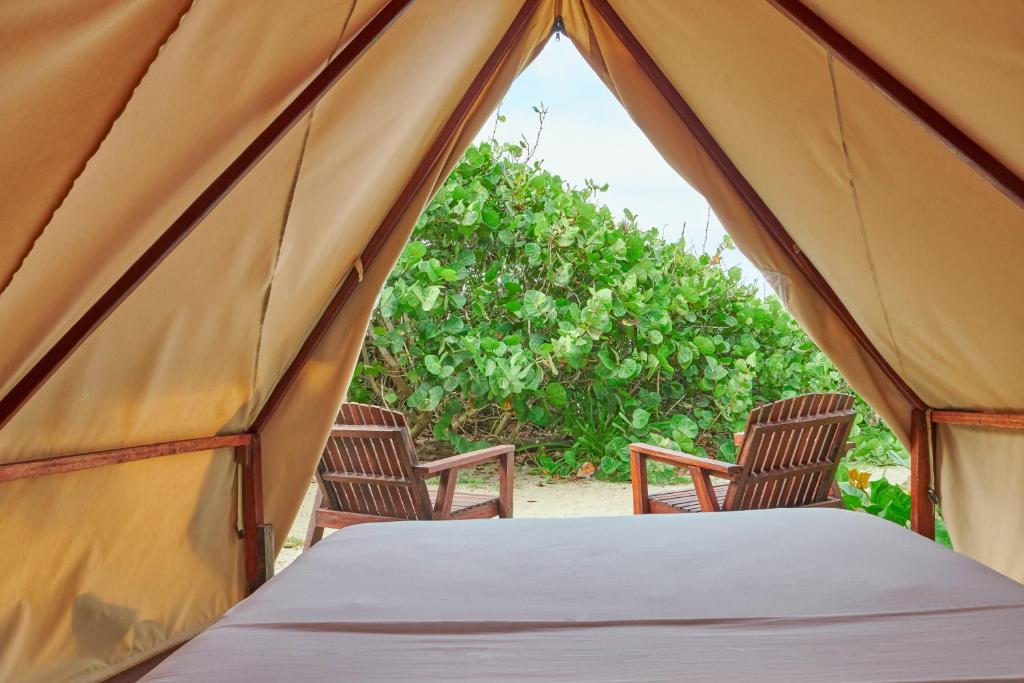 Entre las habitaciones disponibles están: Habitación Compartida Mixta - 4 camas, Bungalow frente a la playa, Habitación Doble con balcón y vistas al mar, Habitación Doble, Habitación cuádruple, Bungalow con vistas al mar, Habitación Familiar con vista lateral al mar, Habitación Triple.