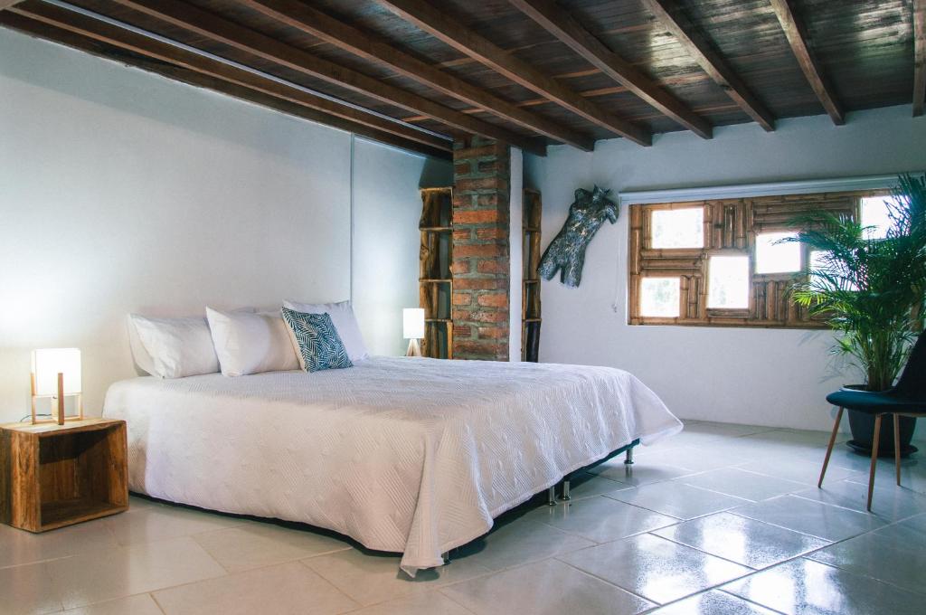 Habitación con cama grande y vistas al jardín