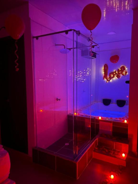 This double room features a hot tub. The double room features air conditioning, a minibar, as well as a private bathroom boasting a bath and a shower. The double room provides a flat-screen TV with satellite channels, a dining area, a wardrobe and a tiled floor. The unit has 1 bed.