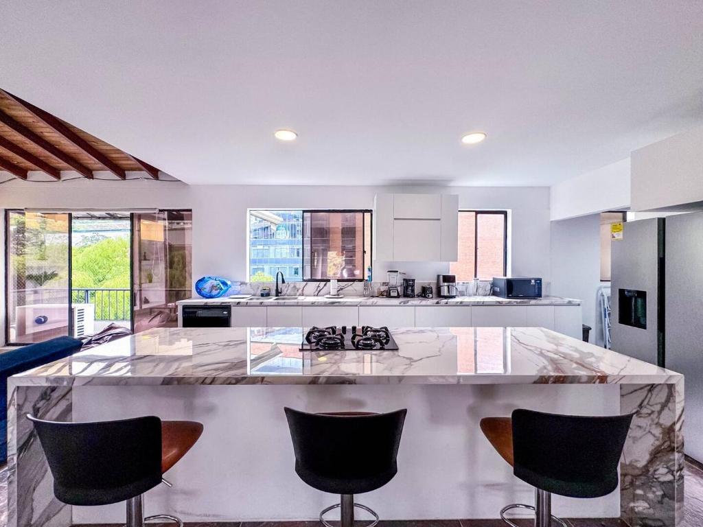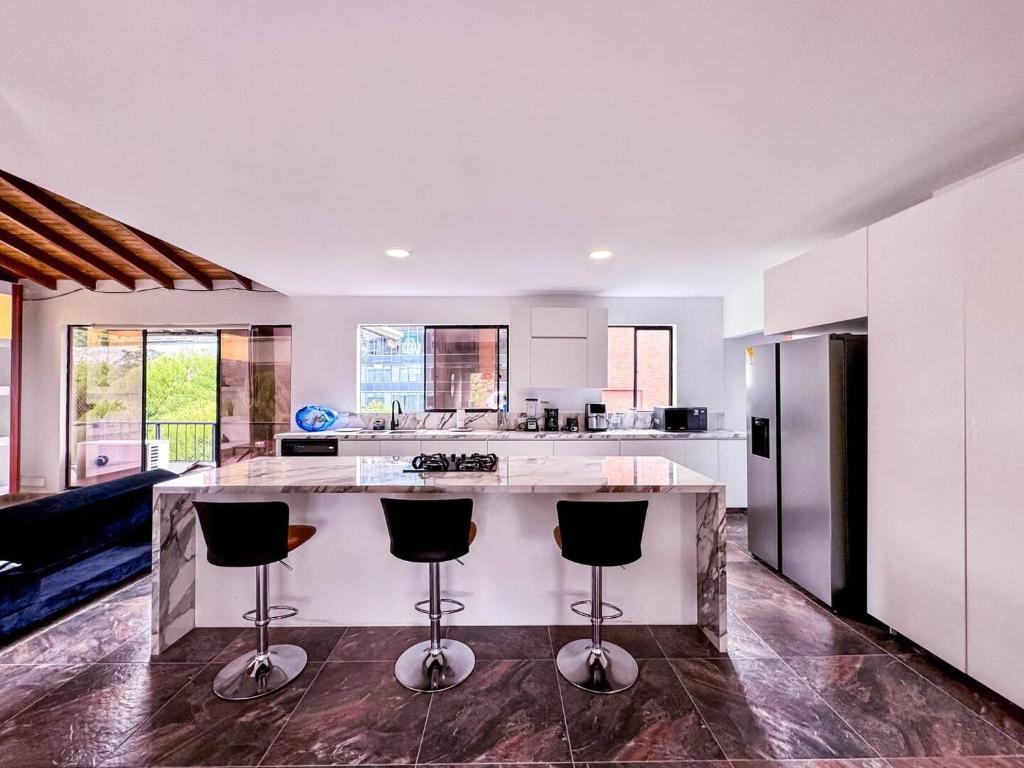 Cerca hay sitios famosos: Parque Lleras (2.1 km), Museo el Castillo (3.6 km), Museo de Arte Moderno de Medellín (4.3 km).