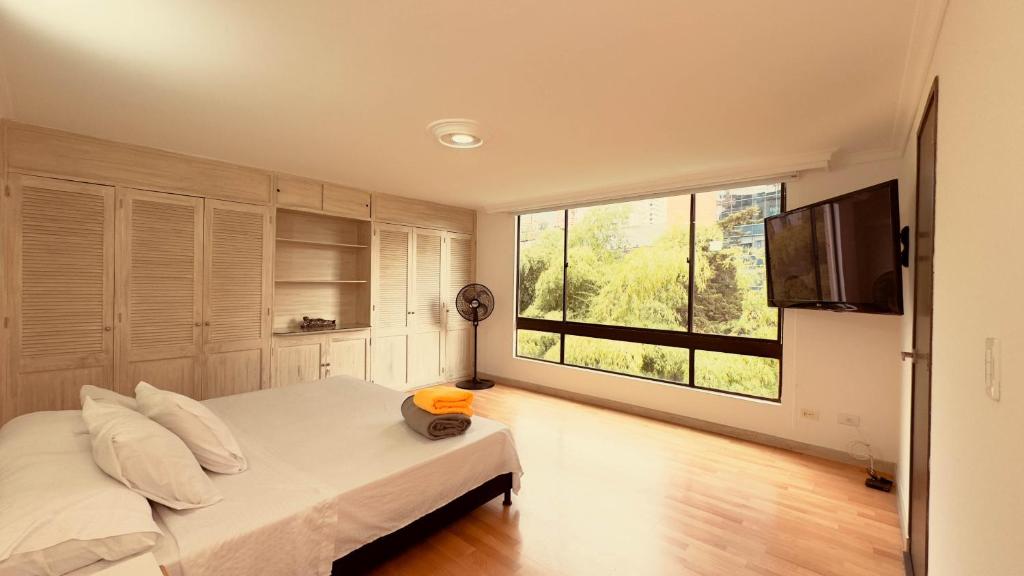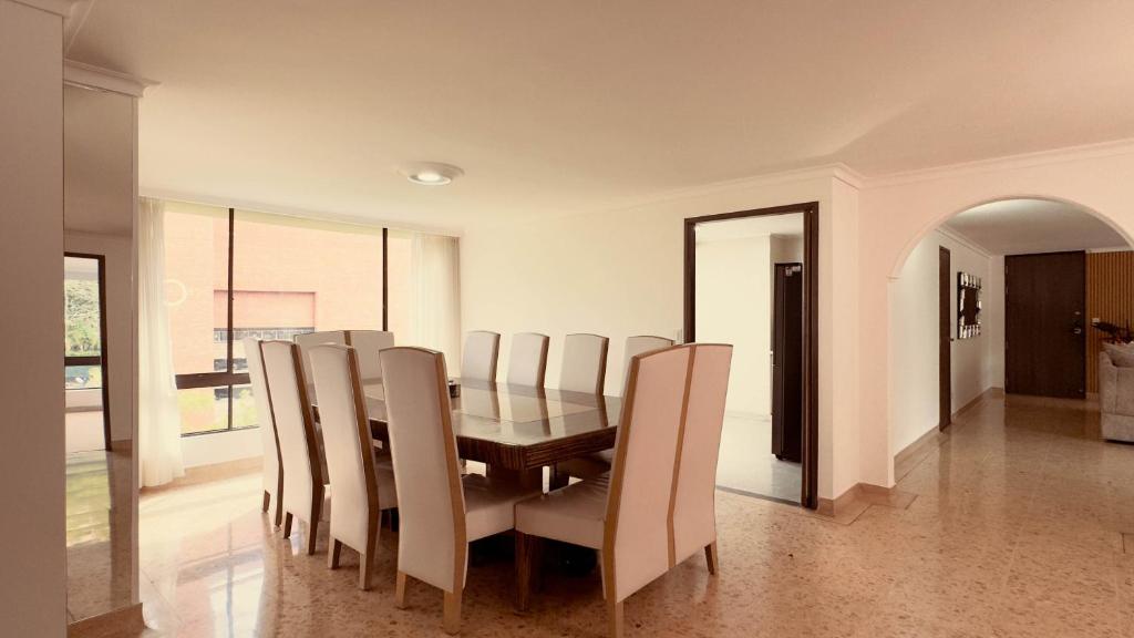 Puedes visitar lugares como Happy City Santafé (900 m), Parque lineal La Presidenta (950 m), Parque Magallanes (1 km) cerca de 5 Hab, espacioso, piscina, al lado del Tesoro!.