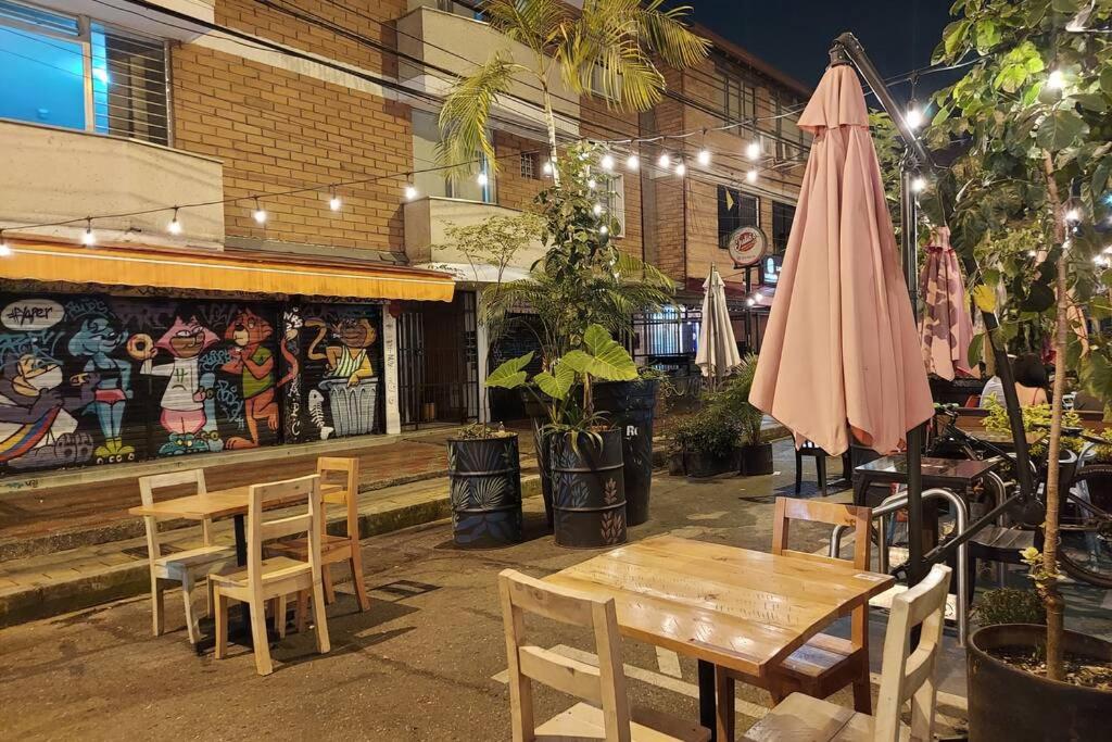 Alrededor de Apartamento en Parque del Poblado hay sitios como Pick Up (6 m), Rusqueta Restaurant (40 m), La Fiambrer (40 m).
