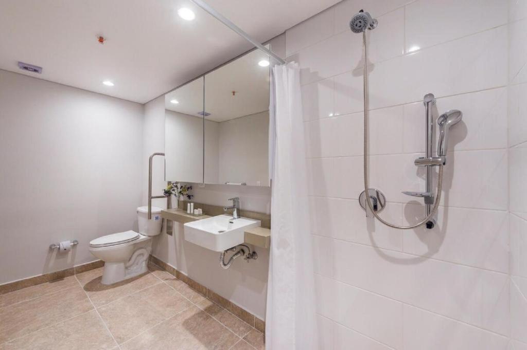 Ducha, WC, Toallas, Papel higiénico, Champú, Gel de ducha