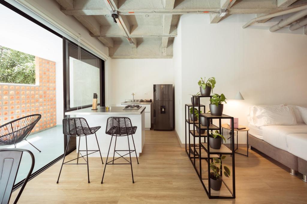 Puedes visitar lugares como Primer Parque de Laureles (200 m), Segundo Parque de Laureles (550 m), Las Mesitas de Simon Bolívar (650 m) cerca de Hojarasca by Wynwood House.