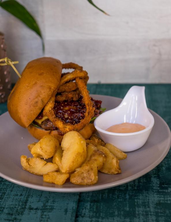 El hotel tiene áreas de comida disponibles para los huéspedes.
