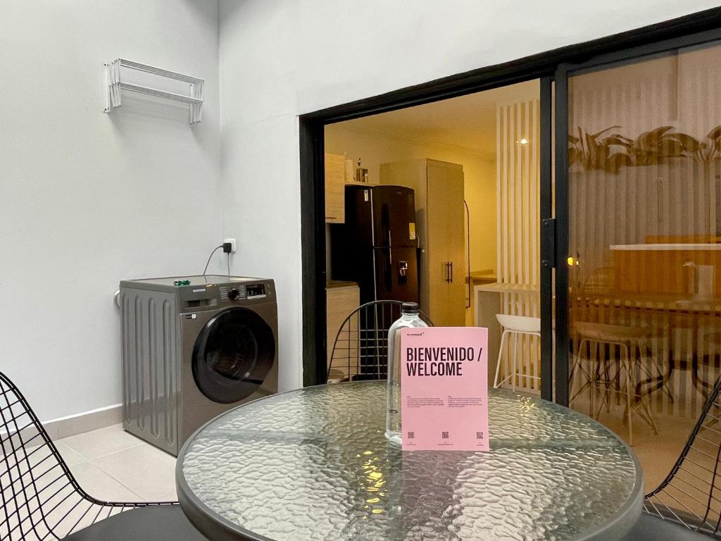Zona de cocina, Nevera, Microondas, Cocina, Utensilios de cocina, Cafetera, Lavadora, Hervidor eléctrico, Secadora de ropa, Copas de vino