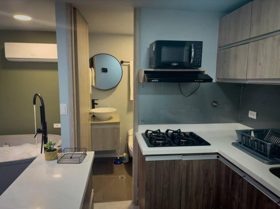 Puedes visitar lugares como Parque de los Mangos (100 m), Parques de Conquistadores (850 m), Nutree Cann (850 m) cerca de Loft moderno con bañera Medellín 1-03.