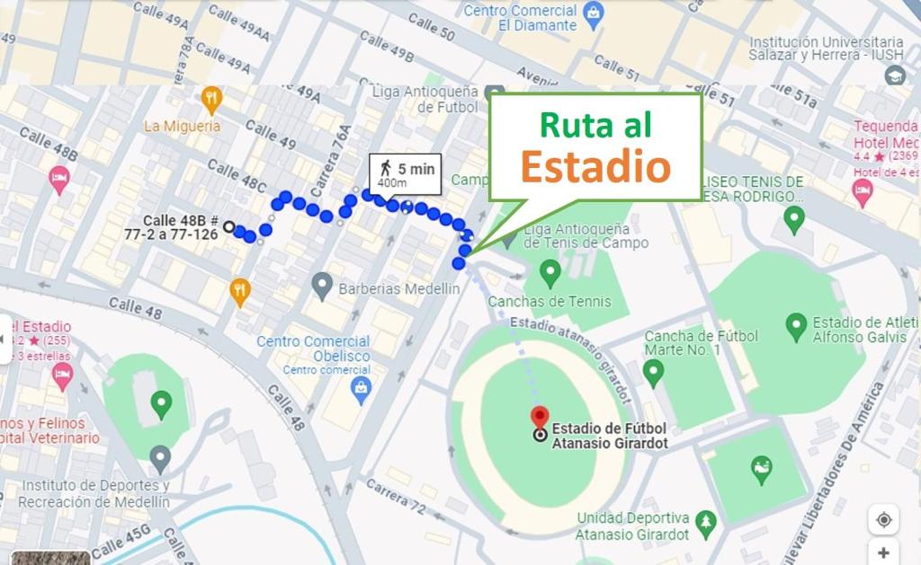 Principales sitios cercanos: Segundo Parque Laureles (2 km), Parque de los Pies Descalzos (3.1 km), Puerta Urbana (3.1 km).