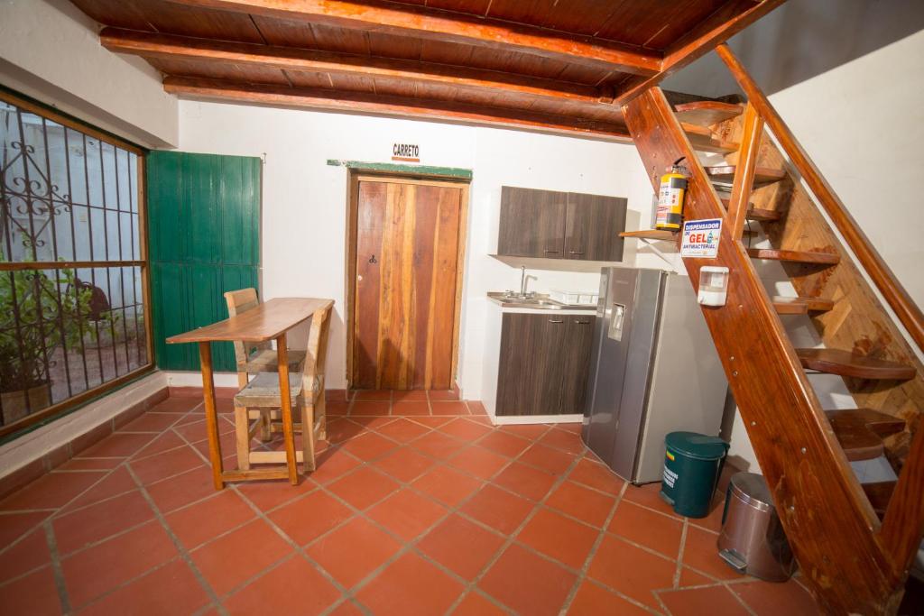 Zona de cocina, Nevera, Microondas, Utensilios de cocina, Productos de limpieza, Cafetera, Mesa de comedor