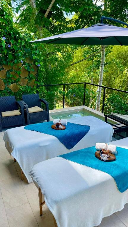 This twin room boasts a private pool and a hot tub. The spacious twin room provides air conditioning, a private entrance, a balcony with garden views as well as a private bathroom featuring a shower. The unit offers 2 beds.