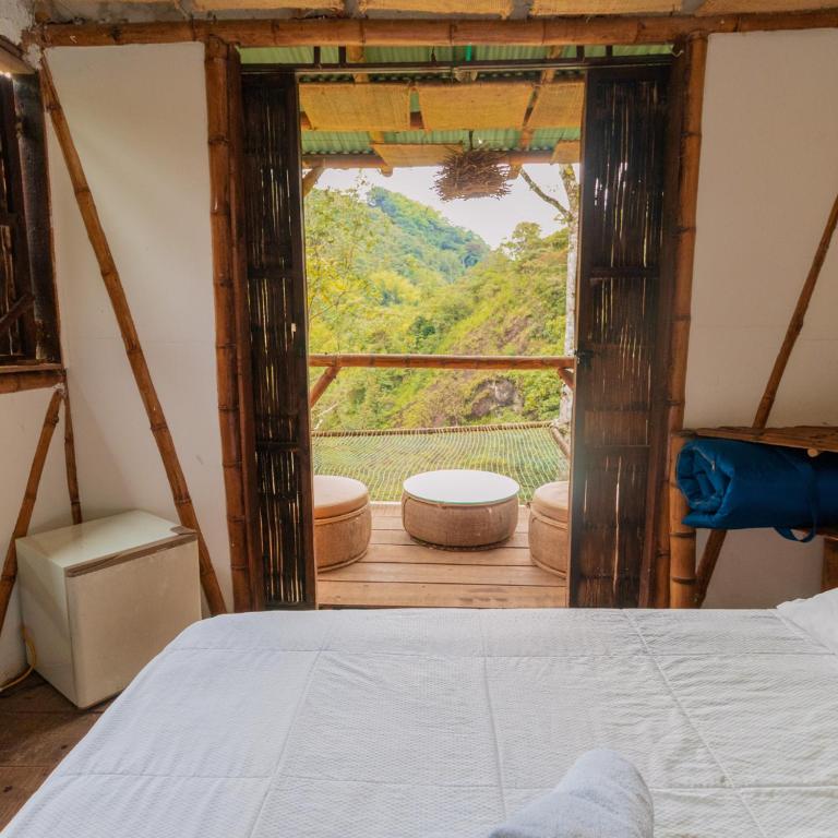 Habitación con cama extragrande y vistas a la montaña