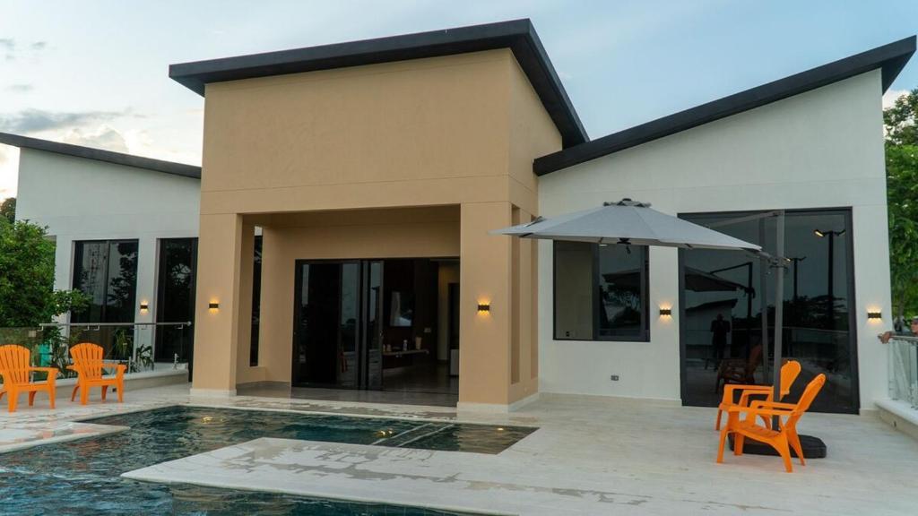 Boasting 1 bedroom and 4 bathrooms, this apartment has a living room and private pool where you can relax. The apartment's kitchen is available for cooking and storing food. This apartment has air conditioning, a washing machine, a flat-screen TV and garden views. The unit offers 3 beds.